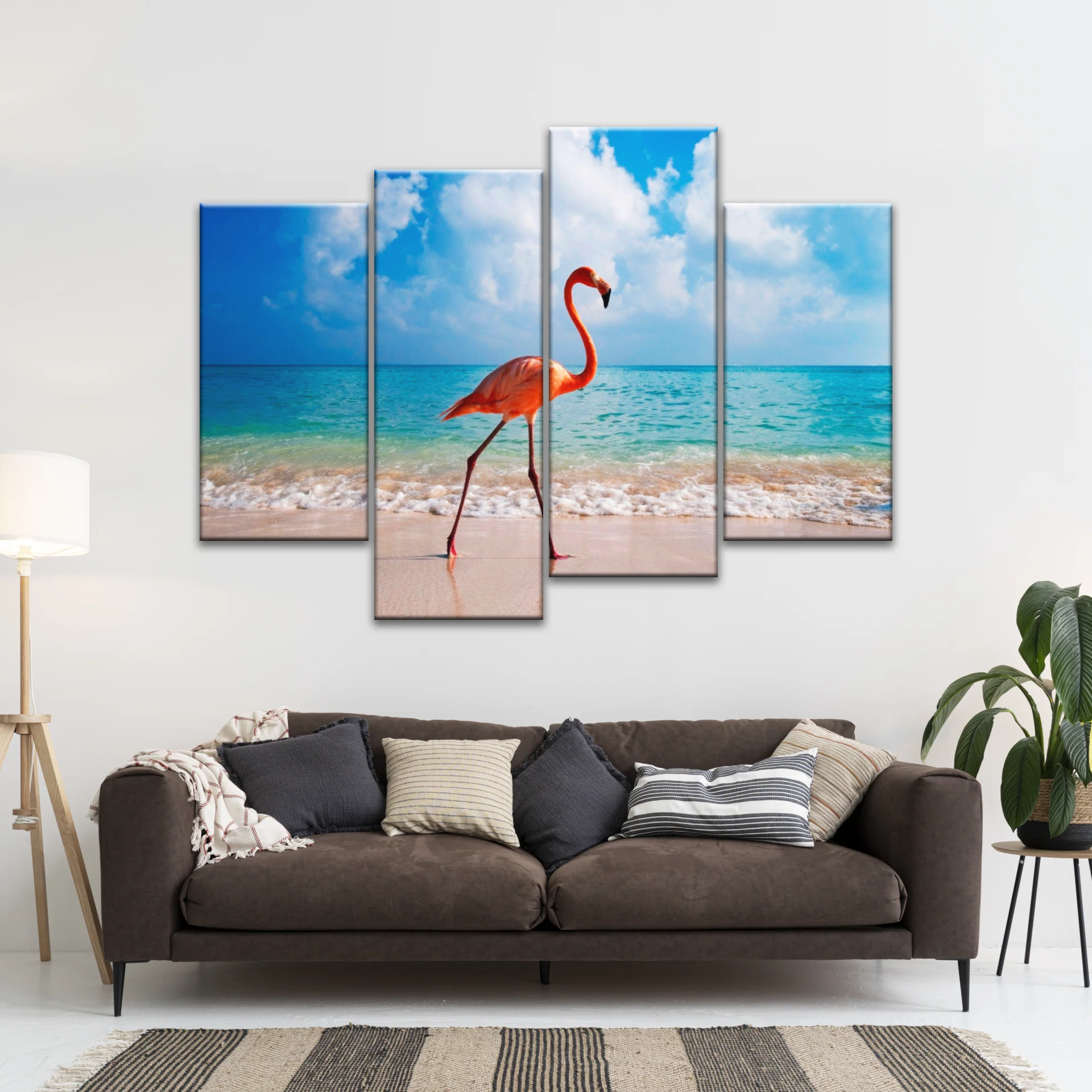 Embark on a sensory journey amidst the resplendent chromatic spectrum of the Caribbean, where a elegant flamingo takes a playful splash on the serene beach. The premium-grade canvas brings the vibrant hues into a spellbinding manifestation, rendering it an enchanting augmentation to any space.