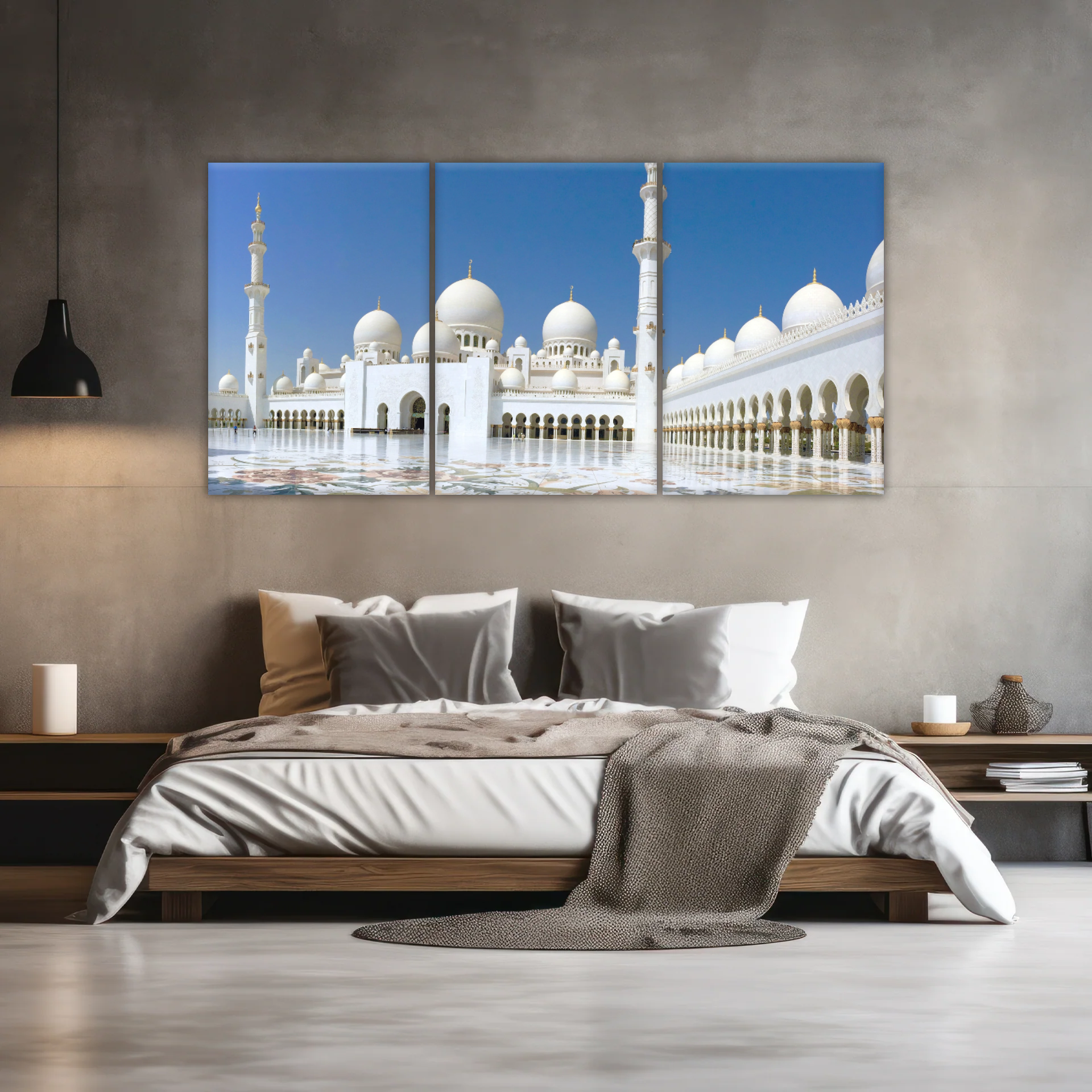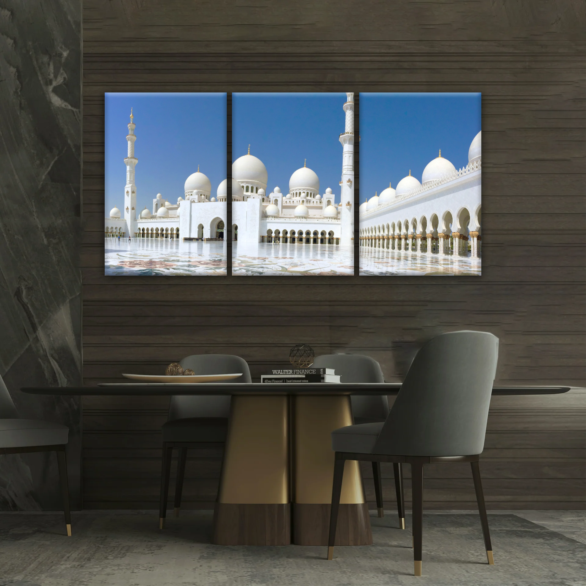 Abu Dhabi Islamic Architecture White Mosque Under Sunlight Wall Art