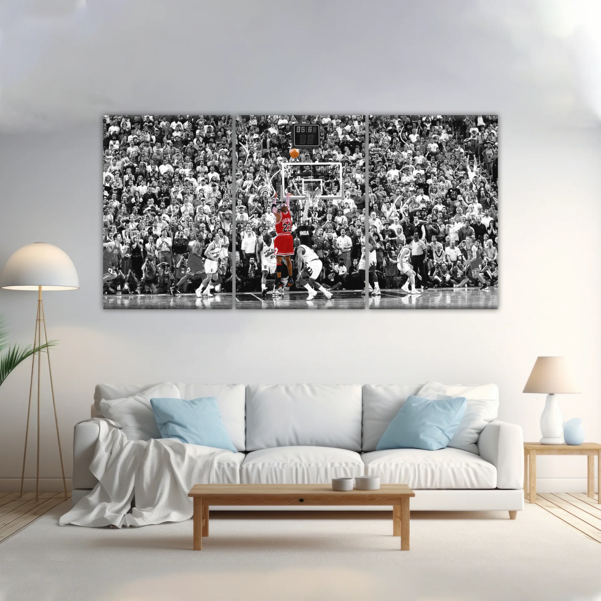 This eye-catching artwork features Michael Jordan making an iconic shot, highlighted in vibrant red against a black-and-white background. Celebrate the legacy of a basketball legend with our 'Basketball Superstar Jordan Nice Shot In Red' Selective Coloring photos on canvas.