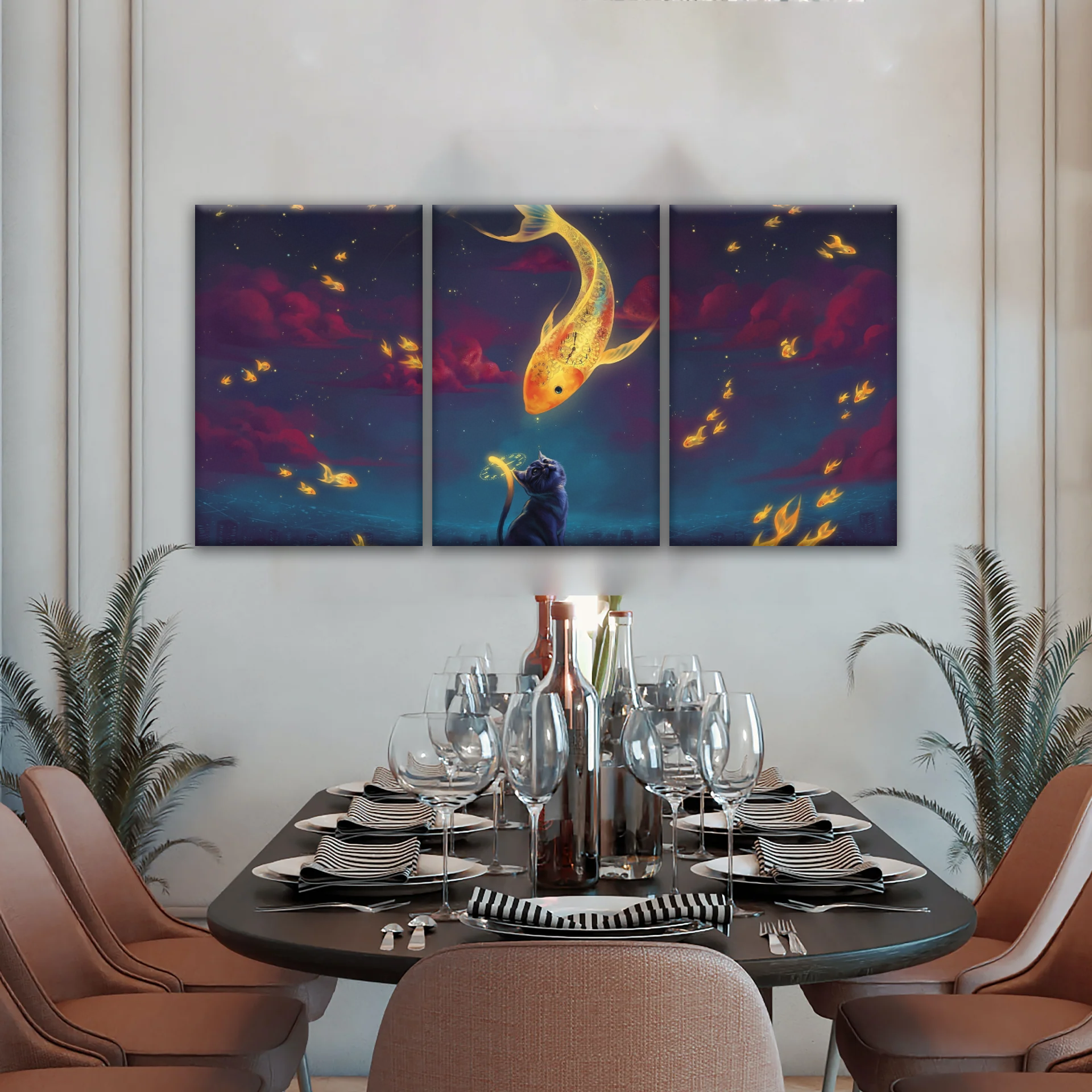 Cartoon Cat and Goldfish Canvas Print From Photo
