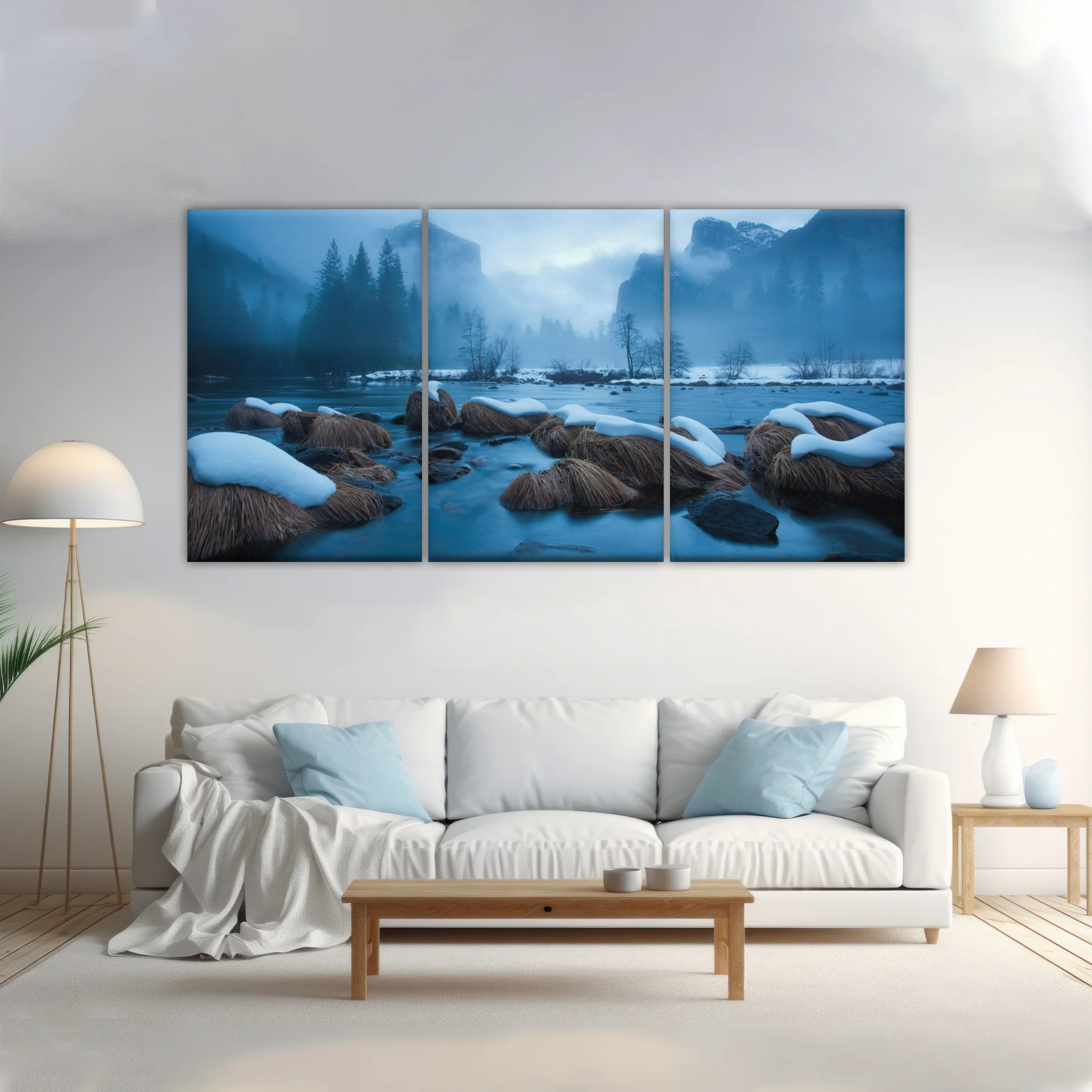 This piece of artwork show us the moment when the ice on a lake begins to melt, symbolizing the transition from winter to spring. Experience the mesmerizing transformation of nature with our 'Ice In The Lake Melts' photos to canvas.