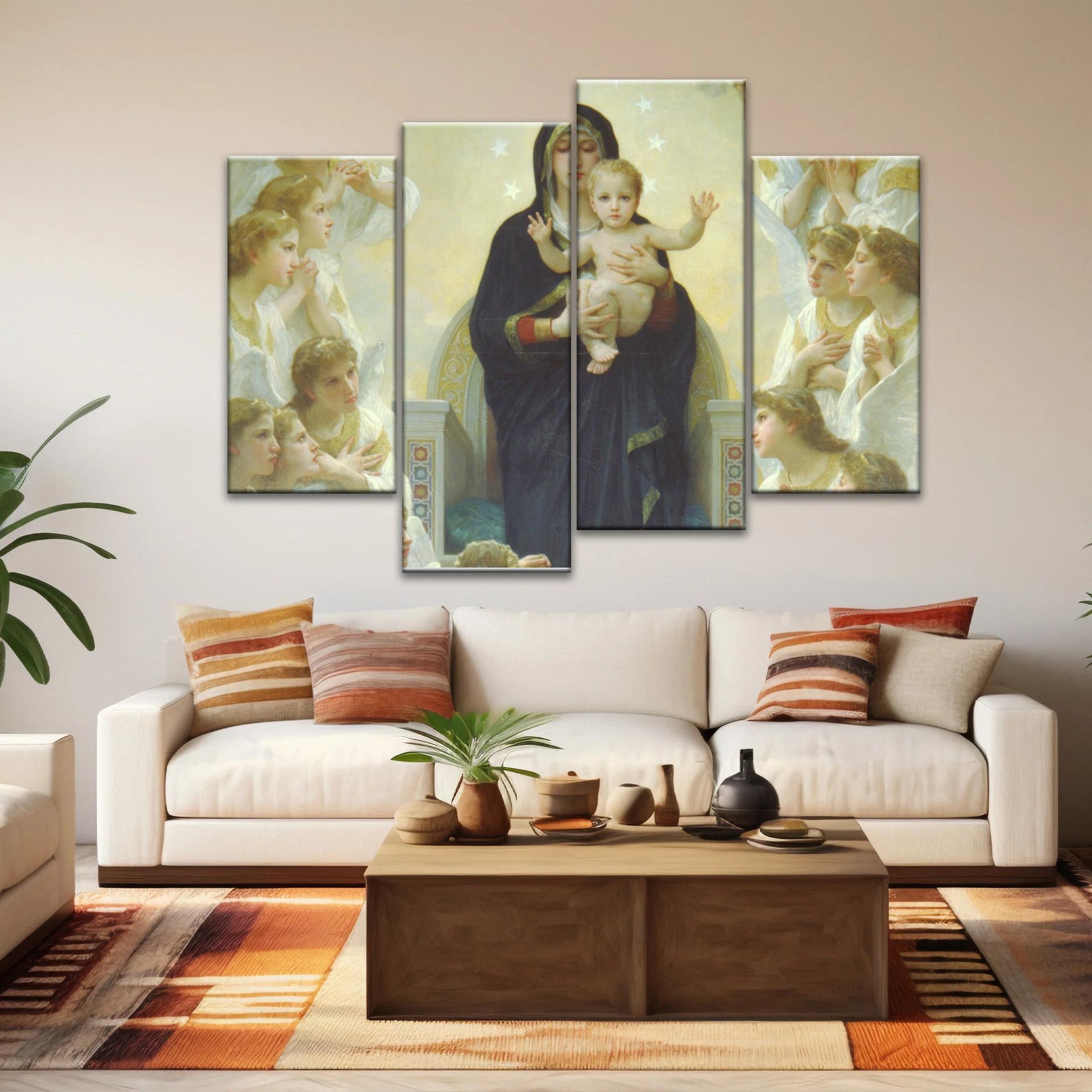 Our Lady of the Angels, an aura of grace intertwines with profound compassion. Her visage mirrors not just love, but a divine essence of maternal warmth, symbolizing both hope and a steadfast shield of protection. This wall art radiates a sense of peace and serenity, encapsulating the spiritual connection that believers feel in her presence.