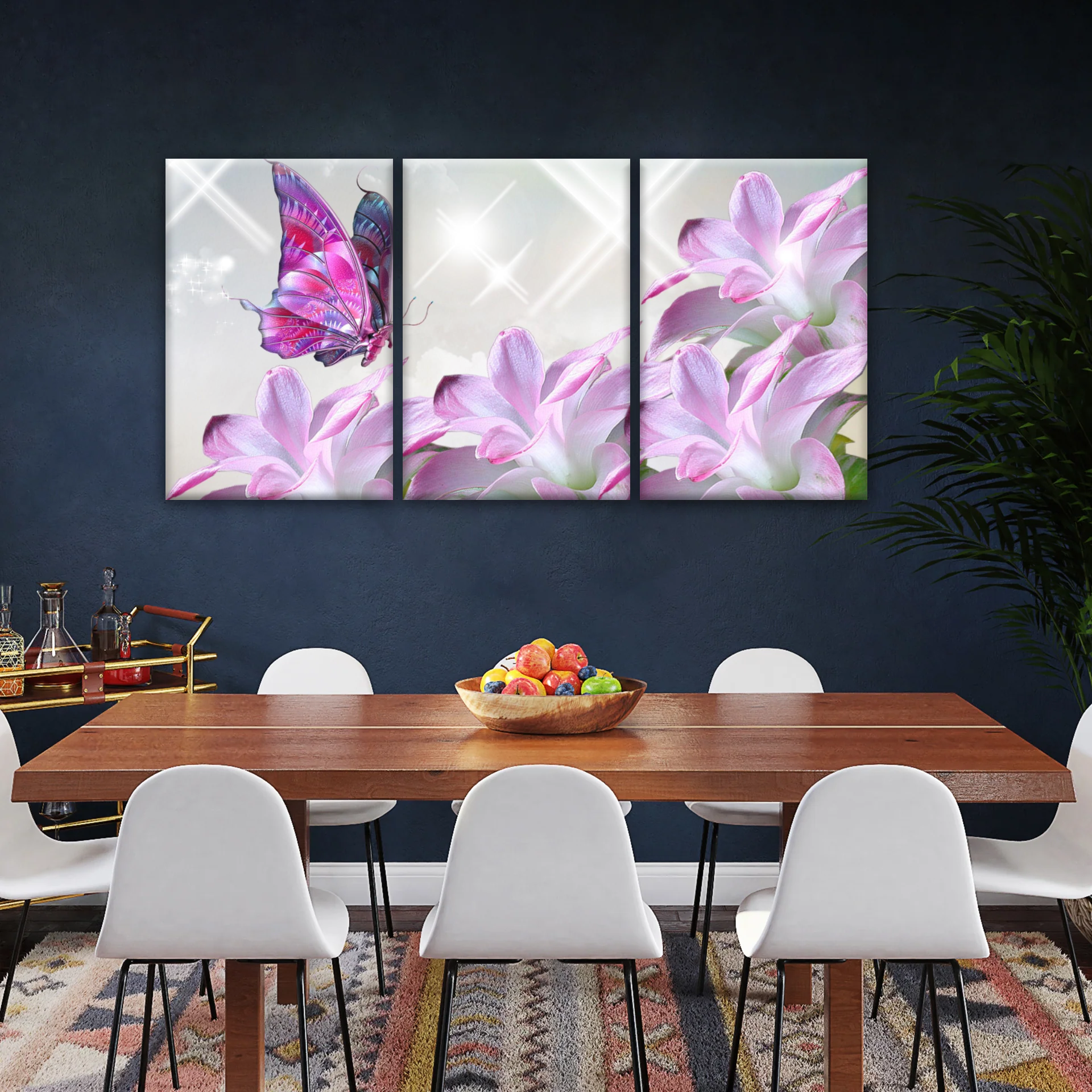 Purple Butterfly On Pink-purple Petaled Flower Butterfly Wall Art