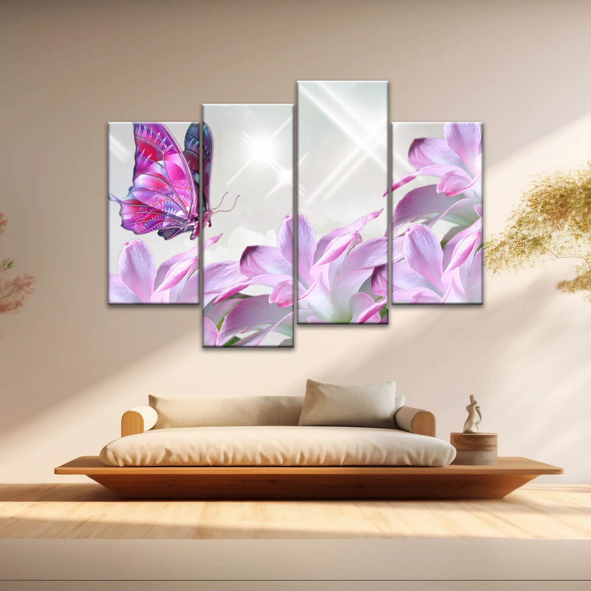 Add a touch of whimsical beauty to your space with this 'Purple Butterfly On Pink-Purple Petaled Flower' picture on canvas. This wall art shows us the delicate elegance of a purple butterfly perched on a vibrant pink-purple petaled flower, invites you to appreciate the beauty of nature's intricate designs.