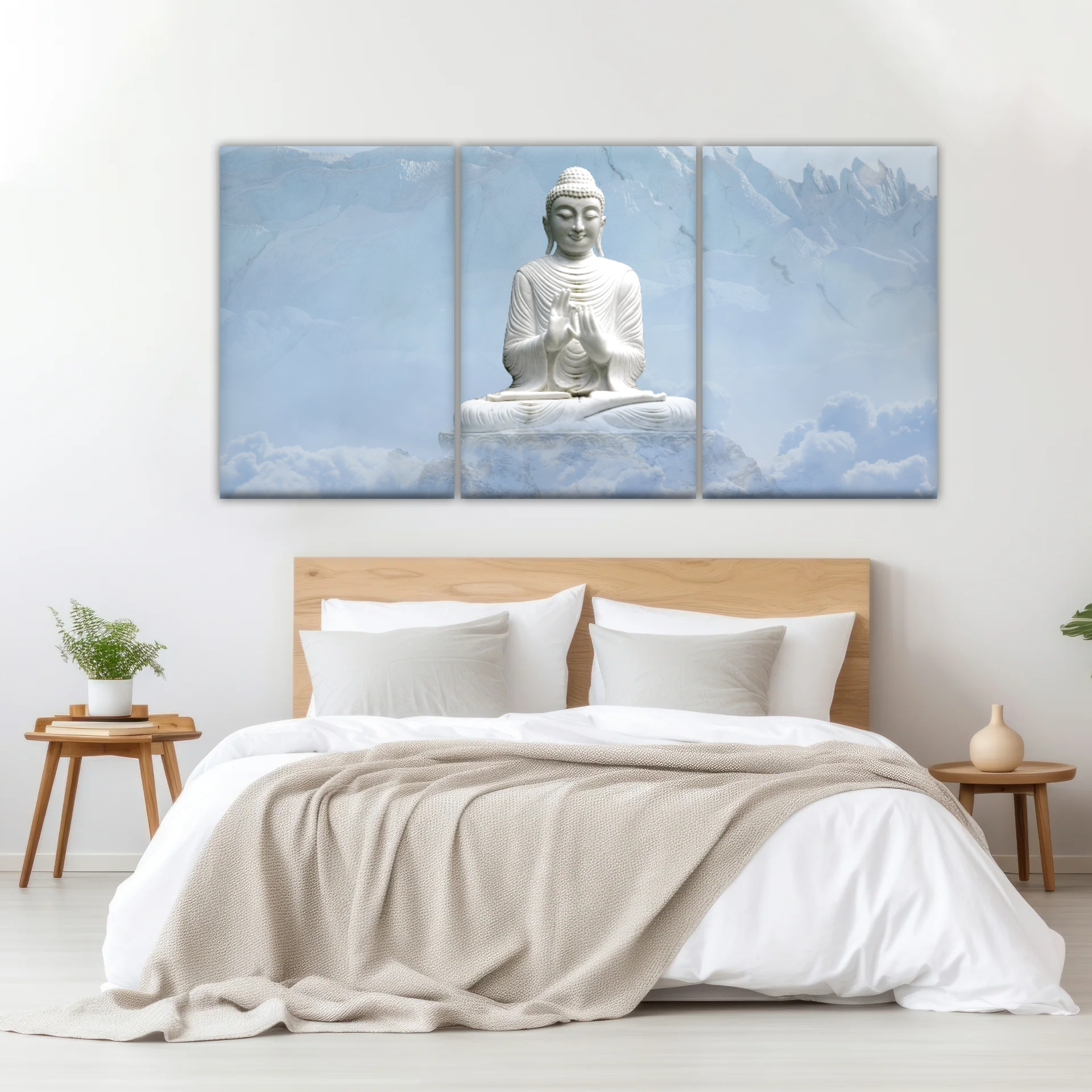 Sculpture of Sakyamuni Buddha Under the Snow-capped Mountains Wall Art