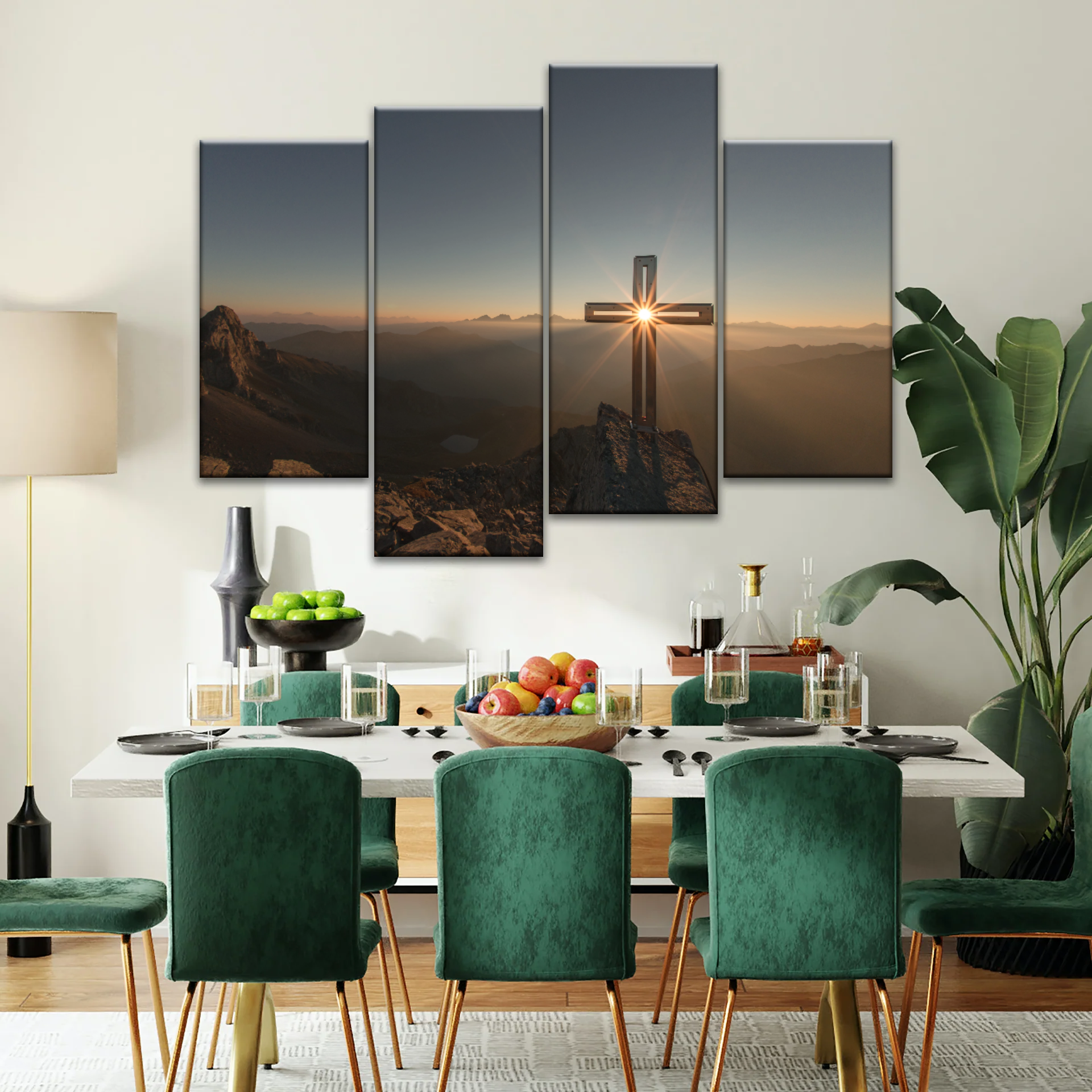 Sunrise Crossing Christian Cross On Mountain Wall Art Home Decor
