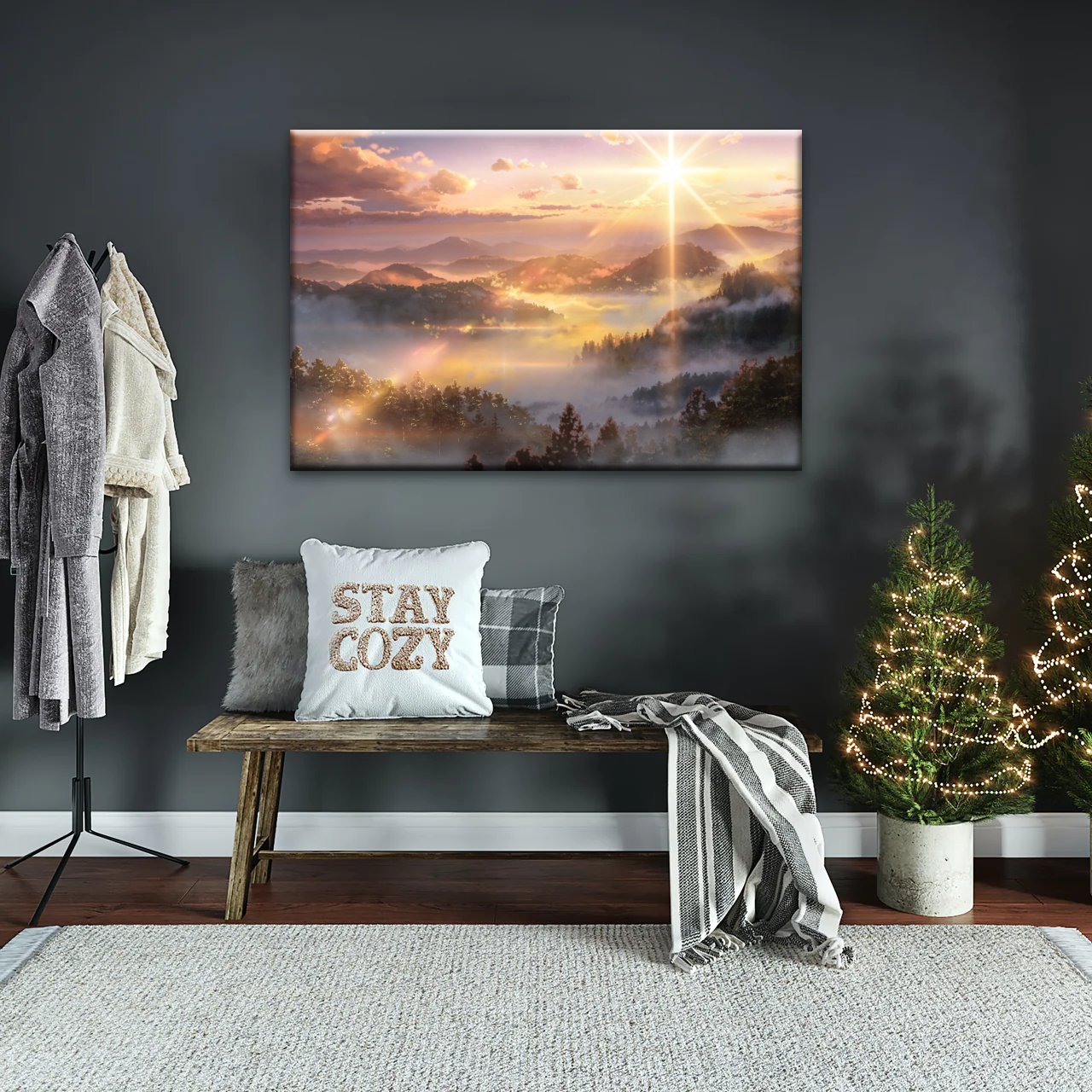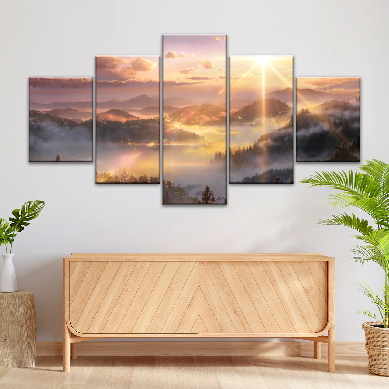 Sunrise Over Forest Landscape Canvas Prints Wall Art
