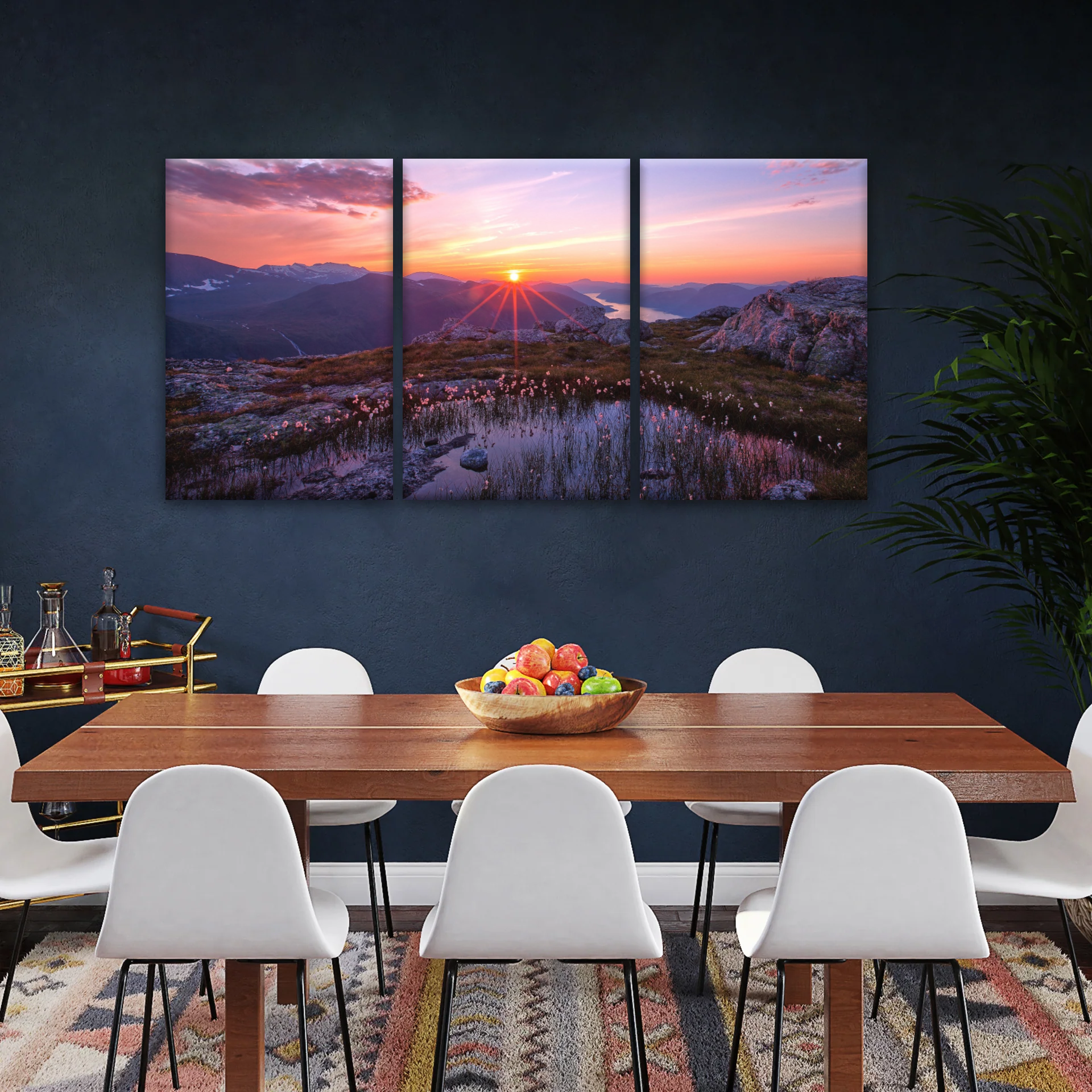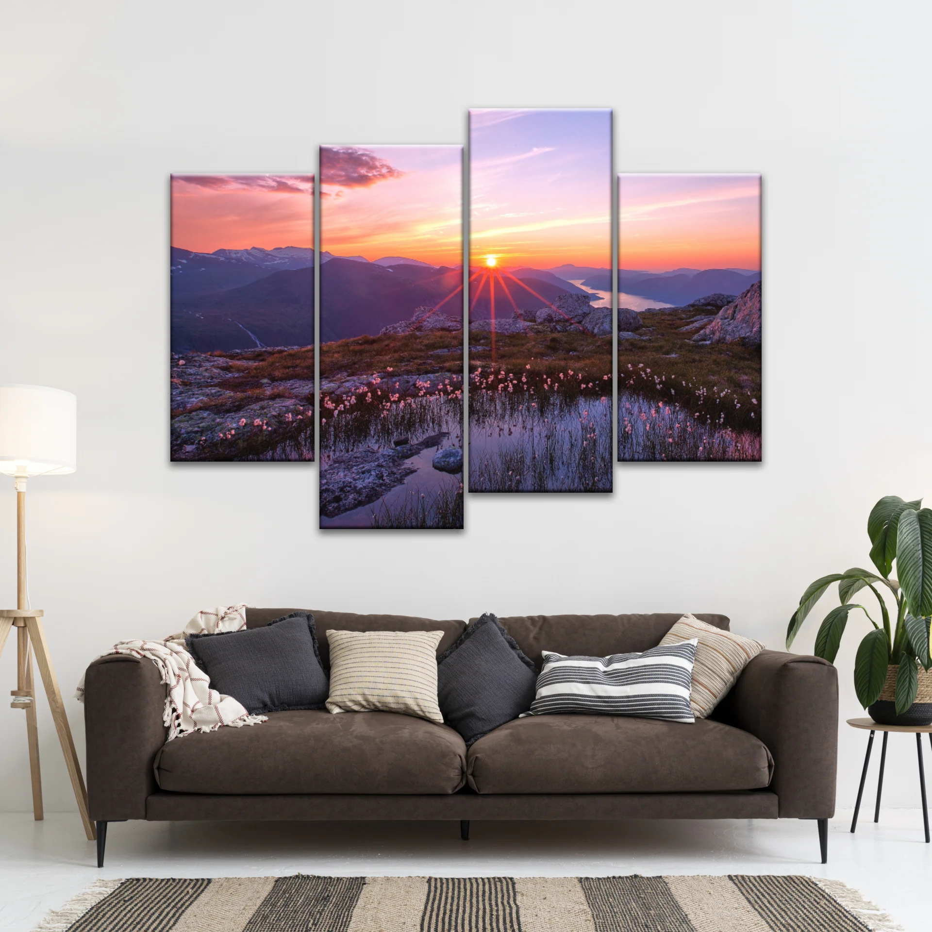 Sunrise Over Mountains Full of Flowers Canvas Photo Prints